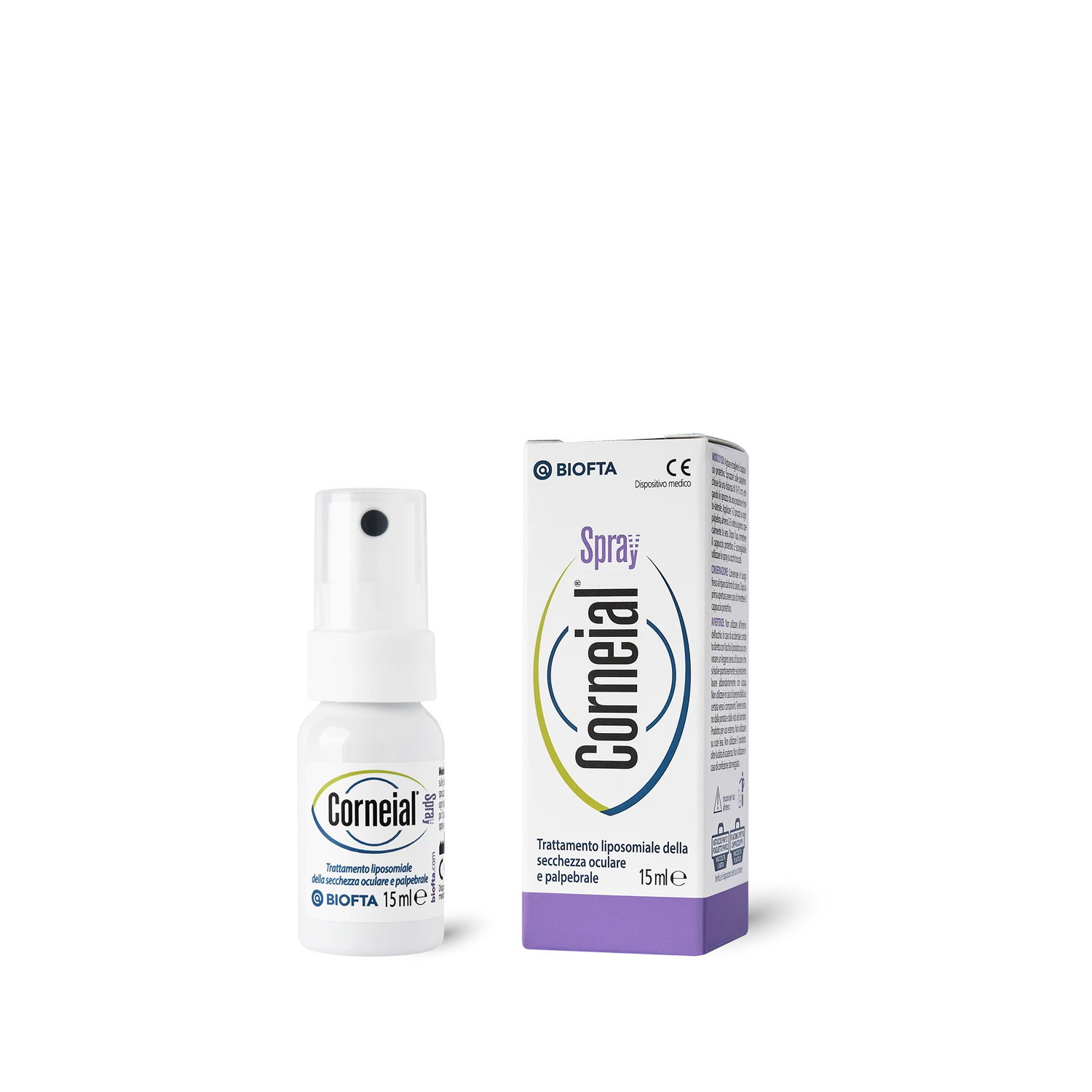 Corneial® Spray è uno spray indicato in caso di bruciore, prurito, irritazioni della zona palpebrale in genere associate a secchezza oculare ma anche a blefariti ed altre patologie oculari comuni. Corneial® Spray è un dispositivo medico a base di liposomi contenenti trealosio, olio di jojoba e terpinen-4-olo (componente attiva di oli naturali come il Tea tree oil), indicato per irritazioni della zona palpebrale che si accompagnano spesso a secchezza oculare ma anche a blefariti ed altre patologie oculari comuni. Dopo l’applicazione di Corneial® Spray si ottiene rapidamente una piacevole sensazione di benessere. La particolare formulazione di Corneial® Spray è in grado di ripristinare la componente lipidica dell’epidermide palpebrale e di assicurarne il mantenimento di una corretta idratazione; il recupero dell’equilibrio idrolipidico consente di risolvere la sintomatologia di bruciore e prurito palpebrale e di ridurre quindi il gonfiore e l’edema conseguenti ai continui sfregamenti della palpebra irritata. La innovativa formulazione spray consente una applicazione uniforme del prodotto sulla superficie perioculare senza necessità di contatto diretto.